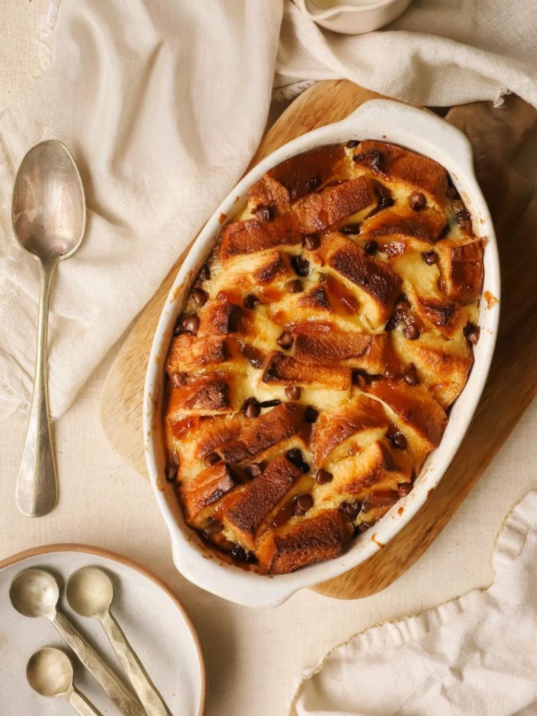 A cosy twist on a British classic, layers of buttery brioche are spread with marmalade and baked until golden and custardy. Comforting, citrusy, and just the right side of indulgent.
