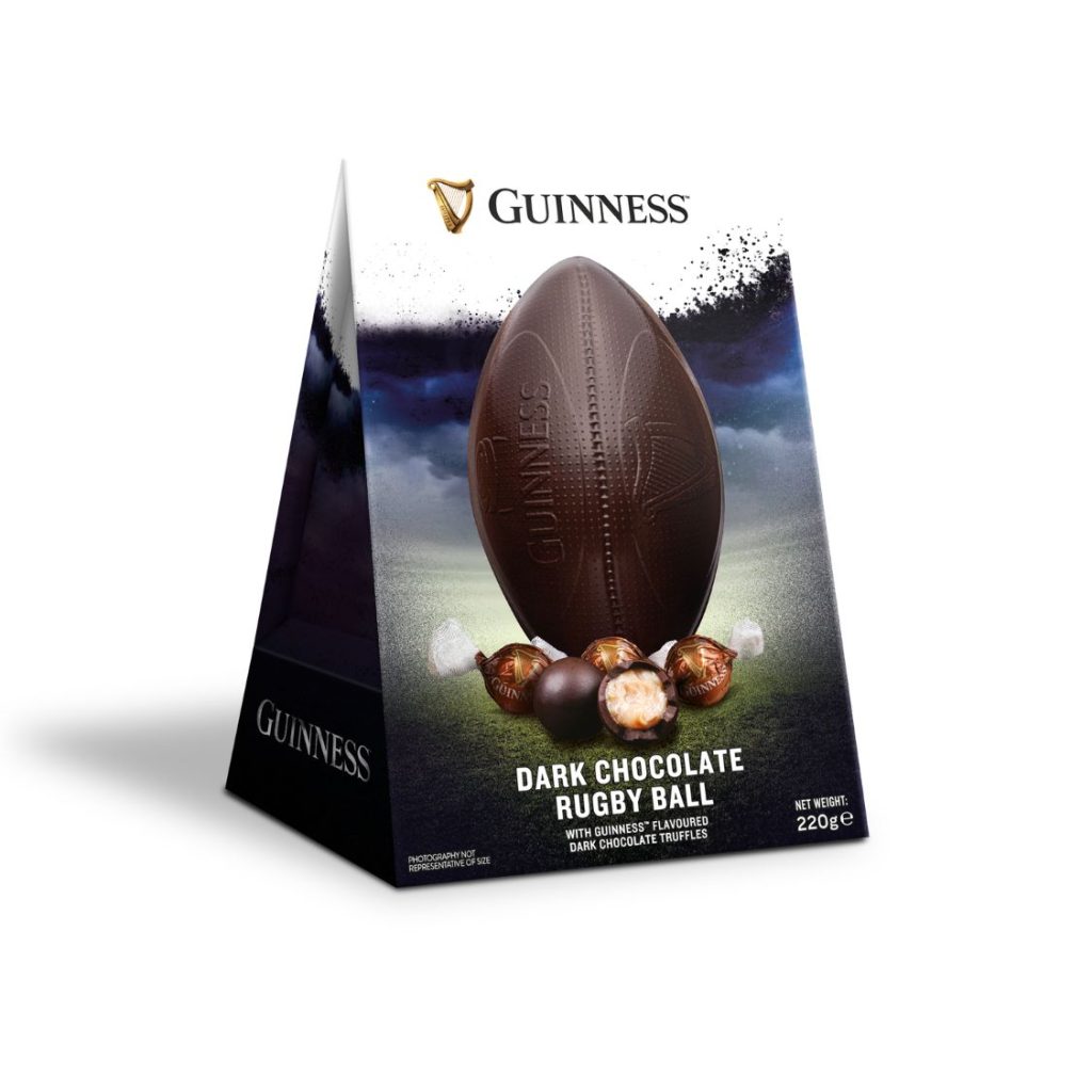 Combining rich, dark chocolate with the distinct flavour of Guinness in a rugby-ball-shaped shell, this egg comes with a line-up of Guinness Chocolate Truffles, filled with Guinness flavoured chocolate gouache.