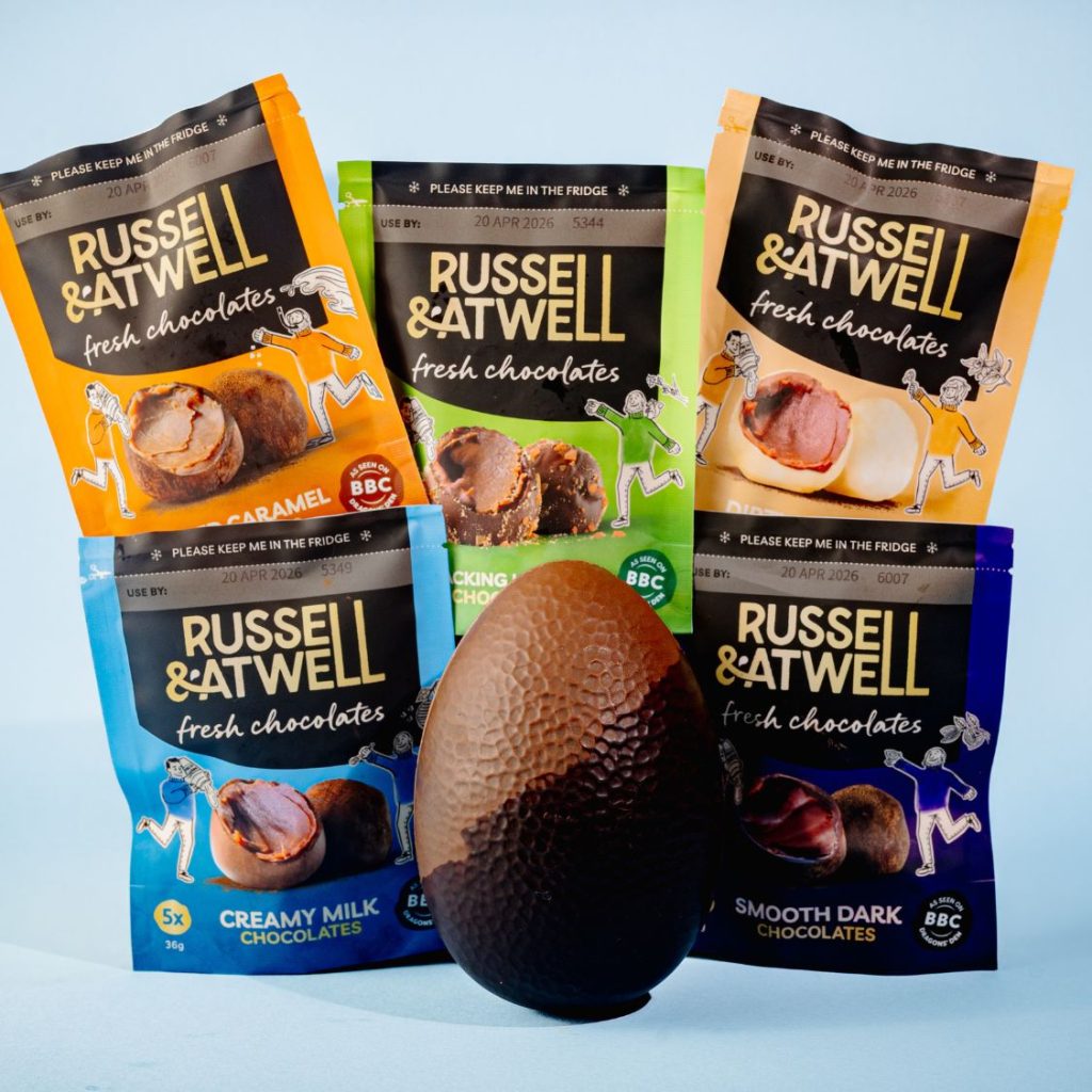 This best-selling milk and dark marbled Mini Monty egg returns this Easter and comes with five pouches of Russell Atwell’s fresh chocolates: Creamy Milk, Salted Caramel, Smooth Dark, Cracking Hazelnut and Dirty Blond.